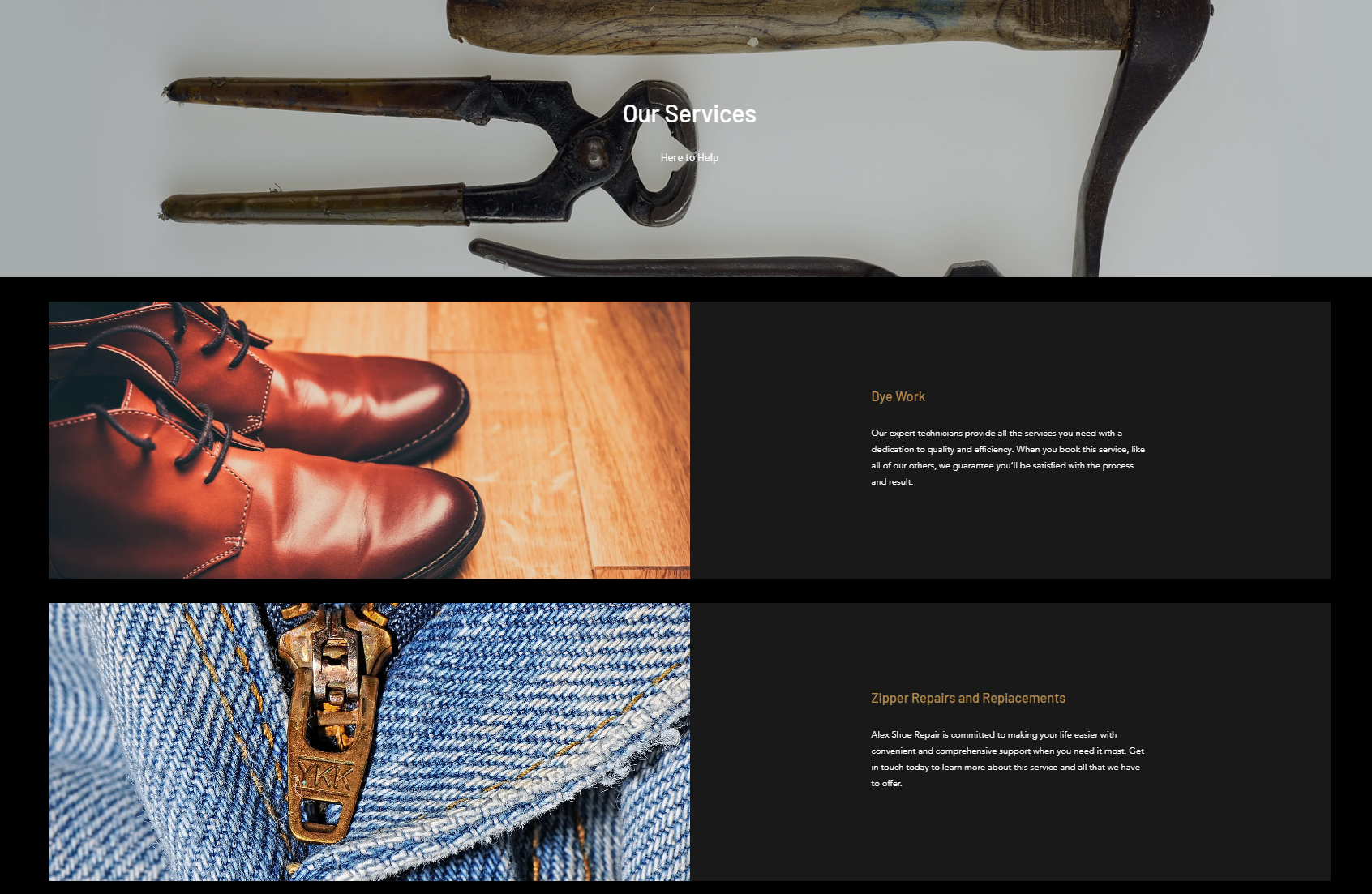 This site was created to have a central place of updated information. Most customers found Alex Shoe Repair through Google Maps and Yelp. These, while helpful, had outdated hours and info.